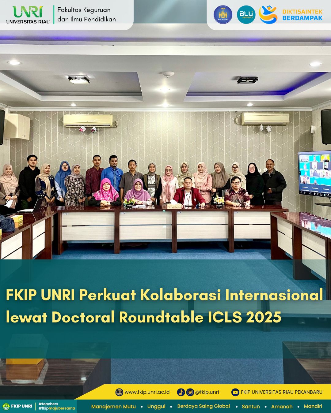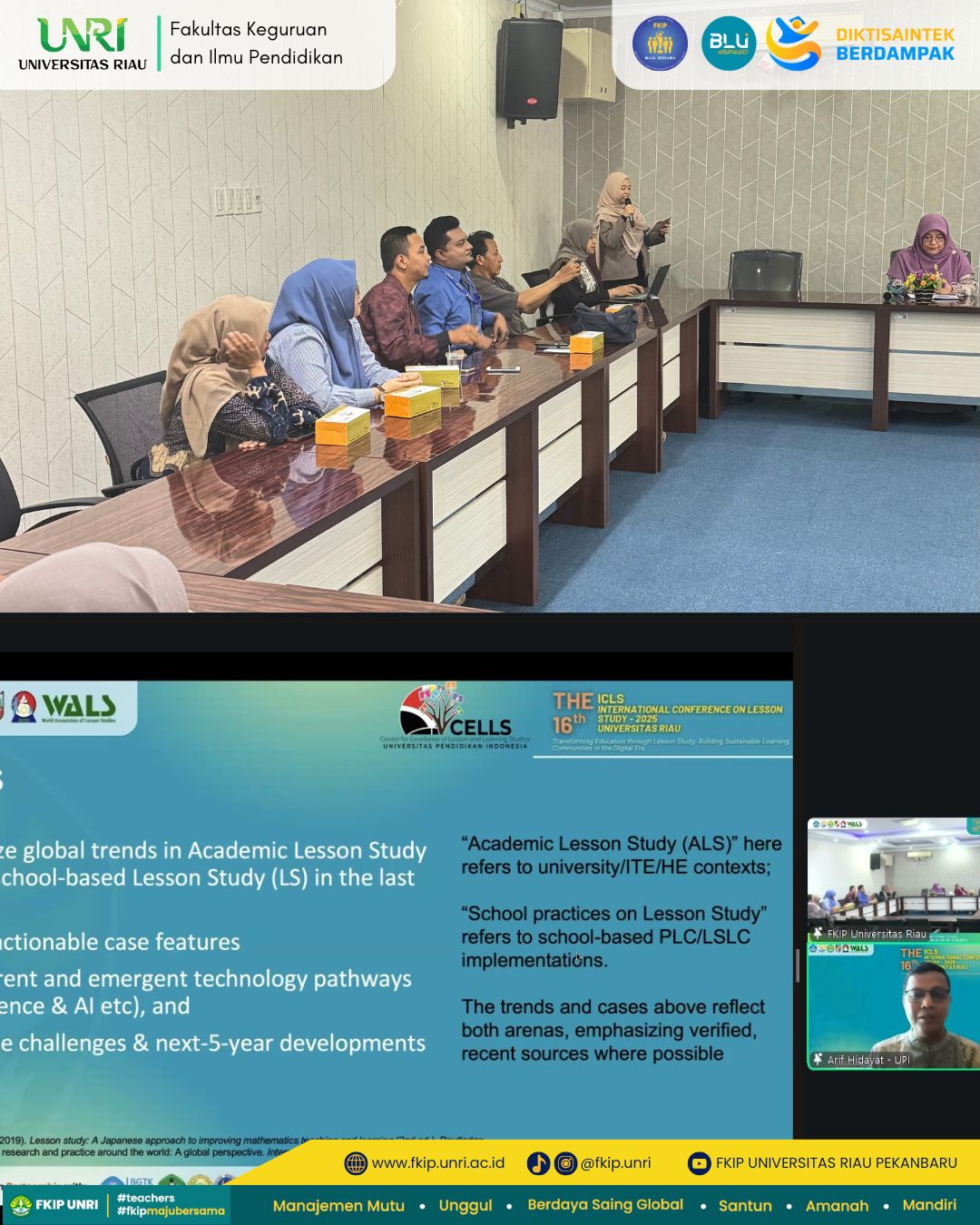 HUMASFKIPUNRI INFO - Pekanbaru, September 14, 2025 — The Faculty of Teacher Training and Education, Universitas Riau (FKIP UNRI), hosted the Doctoral Roundtable, marking the opening agenda of the 16th International Conference on Lesson Study (ICLS) 2025. The forum brought together doctoral researchers from universities at home and abroad, focusing on strengthening lesson study in the digital era.