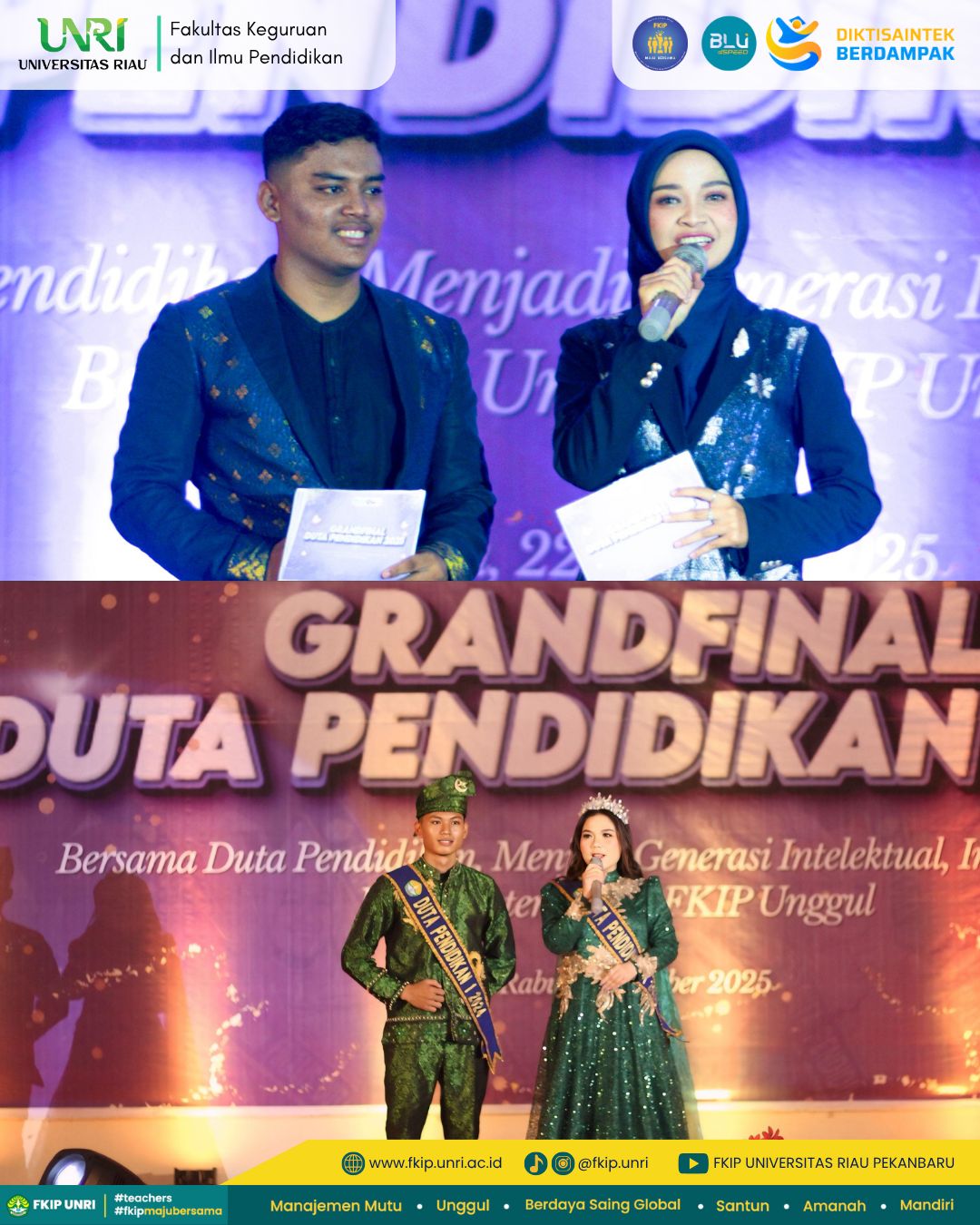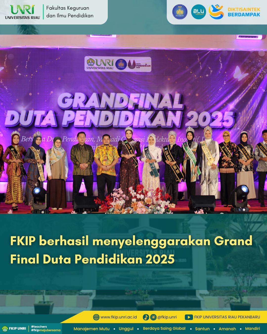 HUMASFKIPUNRI INFO – Pekanbaru, 2025 — The Faculty of Teacher Training and Education, Universitas Riau (FKIP UNRI), successfully held the Grand Final of Duta Pendidikan 2025. The event began with opening remarks by the Masters of Ceremony, Andes Saputra and Ananda Reva Nurlailo, followed by the official opening delivered by Vice Dean II of FKIP UNRI, Dr. Mahmud Alpusari, M.Pd.