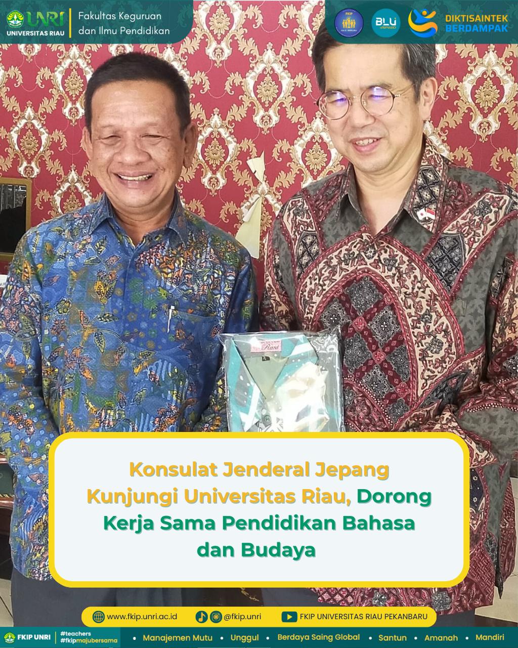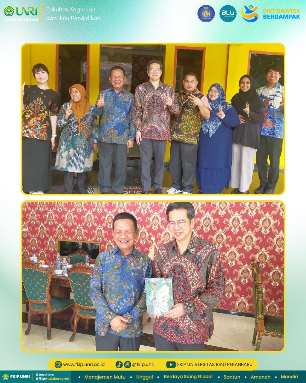 During the visit, Mr. Furugori Toru held discussions with the Dean of the Faculty of Teacher Training and Education (FKIP) Universitas Riau, Prof. Dr. Jimmi Copriady, M.Si., along with lecturers from the Japanese Language Education Study Program at Universitas Riau. The meeting focused on exploring opportunities and strengthening cooperation between Universitas Riau and Japan, particularly in the fields of Japanese language and cultural education.