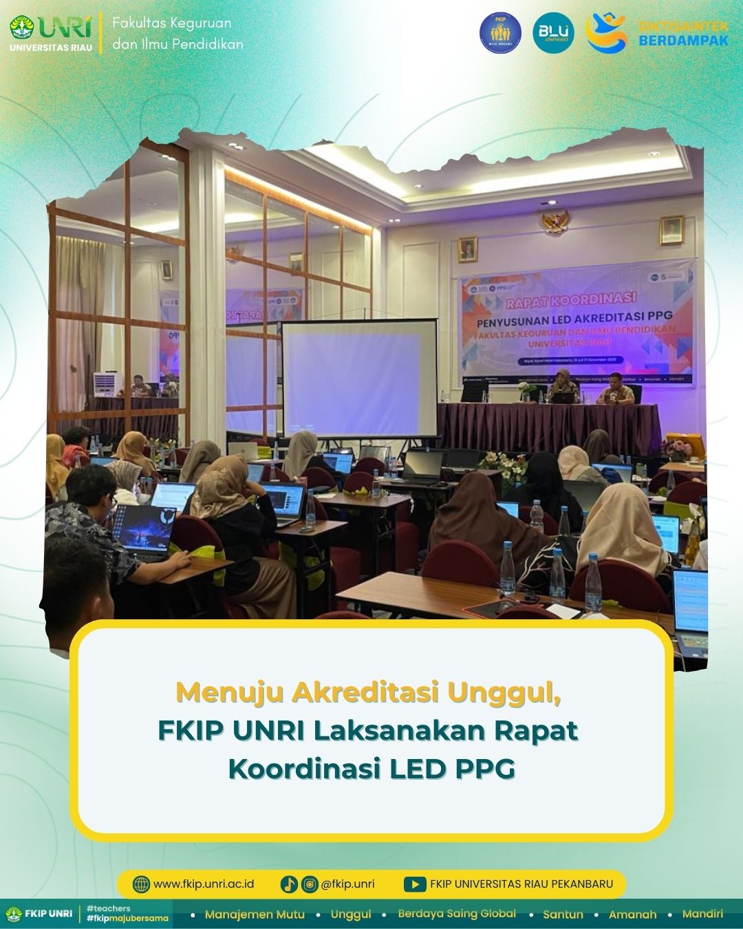 Through this activity, it is expected that the LED document for the accreditation of the PPG Program at FKIP UNRI can be optimally prepared and serve as a strong foundation for achieving excellent accreditation and continuous quality improvement.