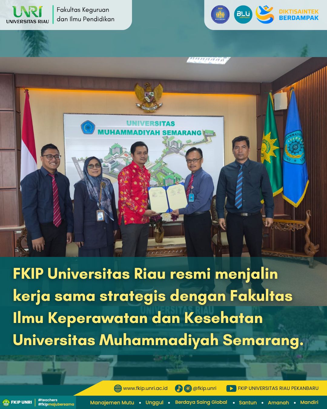 HUMASFKIPUNRI INFO – Fakultas Keguruan dan Ilmu Pendidikan Universitas Riau resmi menjalin kerja sama strategis dengan Fakultas Ilmu Keperawatan dan Kesehatan Universitas Muhammadiyah Semarang.