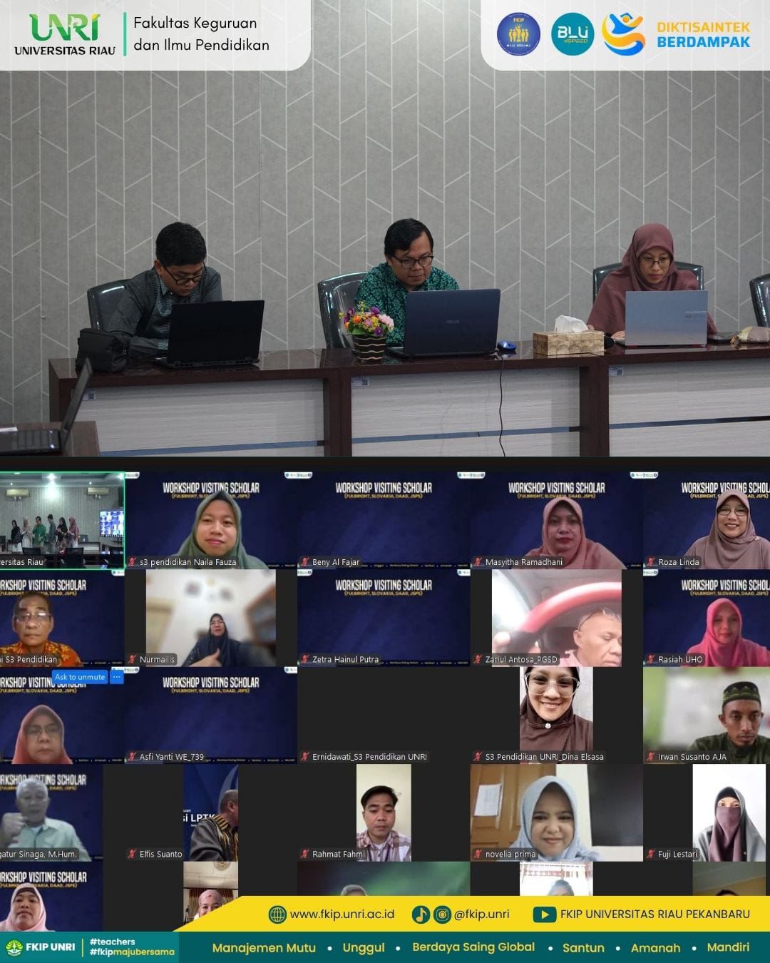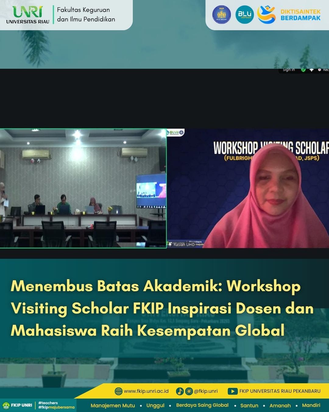 Workshop Visiting Scholar turut memperkuat visi FKIP Universitas Riau sebagai fakultas yang unggul, bermartabat, dan berdaya saing internasional melalui pengembangan kapasitas akademik dan jejaring riset dunia.