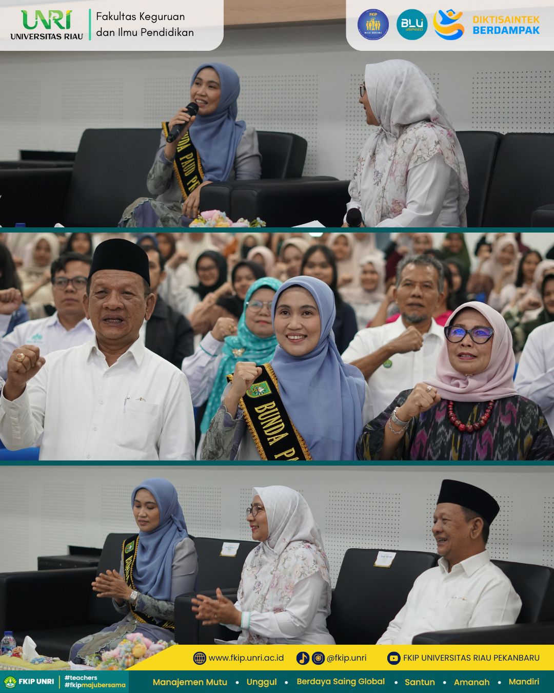 Talkshow berlangsung interaktif dan inspiratif dengan moderator Wakil Dekan III, Dr. Ria Novianti, M.Psi., yang memandu jalannya diskusi secara dinamis. Kehadiran Bunda PAUD Provinsi Riau memberi motivasi serta wawasan baru bagi mahasiswa tentang pentingnya peran pendidik dalam mencetak generasi emas bangsa.