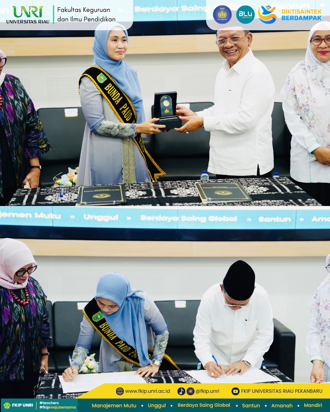 Puncak acara ditandai dengan penandatanganan MoA antara FKIP UNRI dan Bunda PAUD Provinsi Riau sebagai bentuk komitmen bersama untuk memperkuat kolaborasi dalam pengembangan pendidikan anak usia dini di Riau.